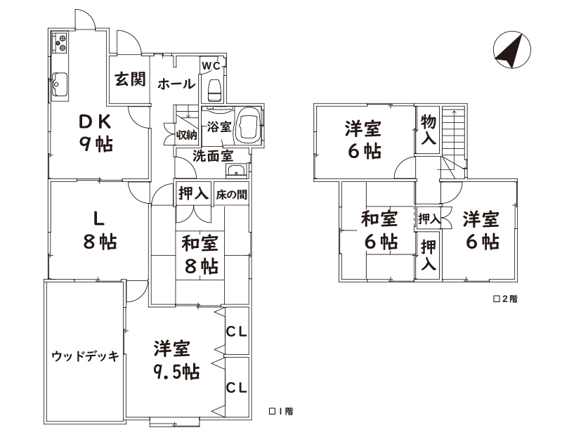 画像  (間取)  (外観)  (玄関)  (玄関) キッチン ダイニングキッチン リビング 1階洋室9.5帖 1階洋室9.5帖/収納 浴室 トイレ 階段 2階和室6帖 2階南東側洋室6帖 2階南東側洋室6帖 R1101277.jpg